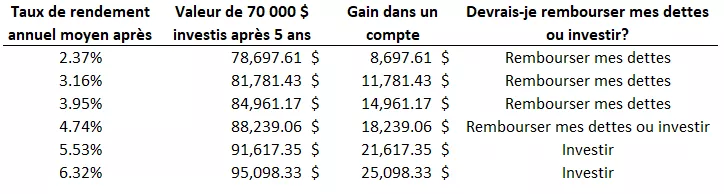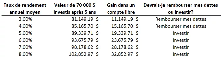 Exemple : Devriez-vous rembourser vos dettes ou investir?